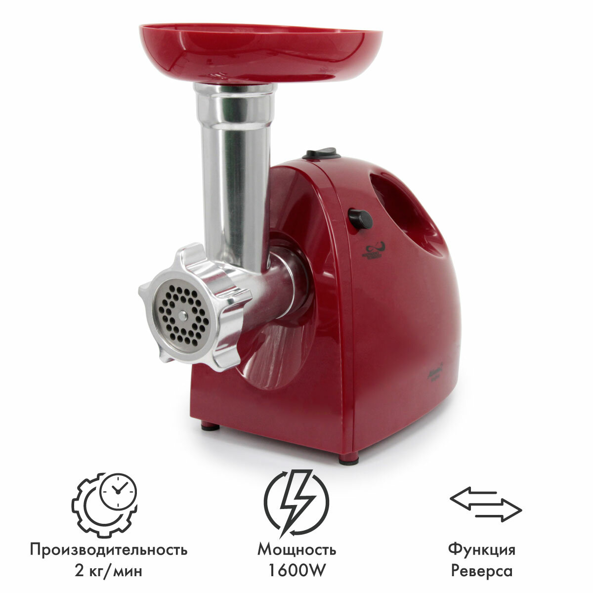 Мясорубка электрическая Atlanta ATH-3299 (red), с реверсом, с насадками для колбас, кеббе