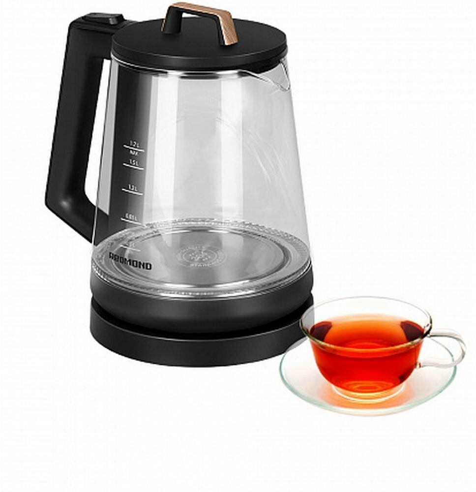 Электрочайник Чайник электрический Redmond RK-G190 1.7л. 2200Вт черный/дерево (корпус: стекло)