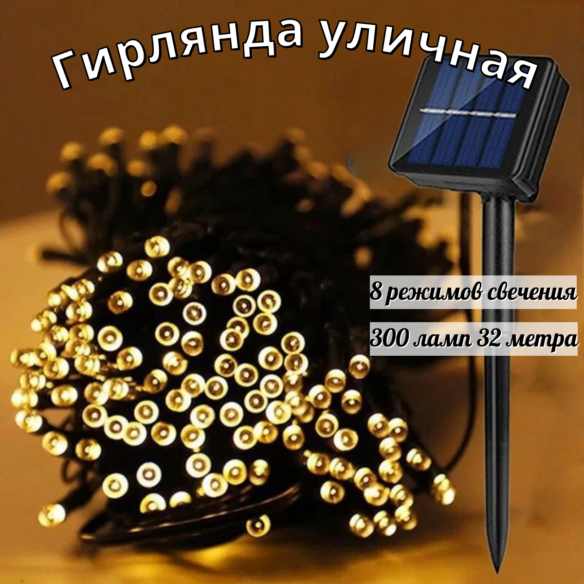 Солнечные панели Светодиодная гирлянда уличная на солнечной батареи 300 ламп 32 метров 8 режимов