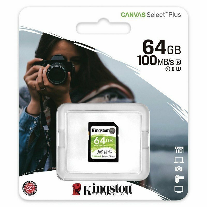 Карта памяти SDXC UHS-I Kingston Canvas Select Plus 64 ГБ, 100 МБ/с, Class 10, SDS2/64GB, 1 шт., без адаптера
