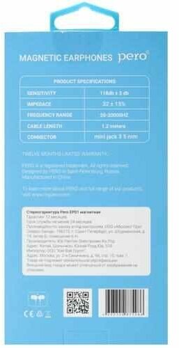 Наушники PERO EP01, вакуумные, микрофон, 118 дБ, 3.5 mm, 1.2 м, магнитное крепление, черные 9605971