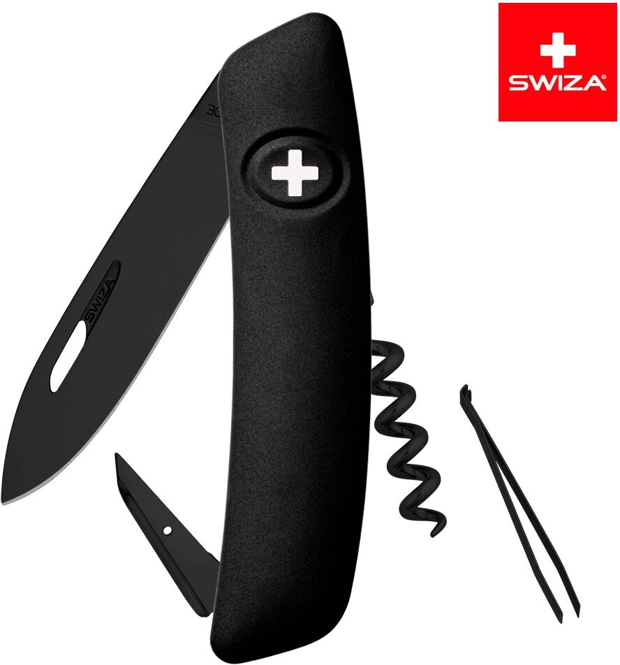 Швейцарский нож Swiza D01 AllBlack, 95 мм, 6 функций, черный (подар. упак.) KNI.0013.1010