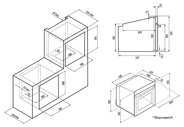 | Размеры для встраивания (ВхШхГ) | 600x560x550 мм |