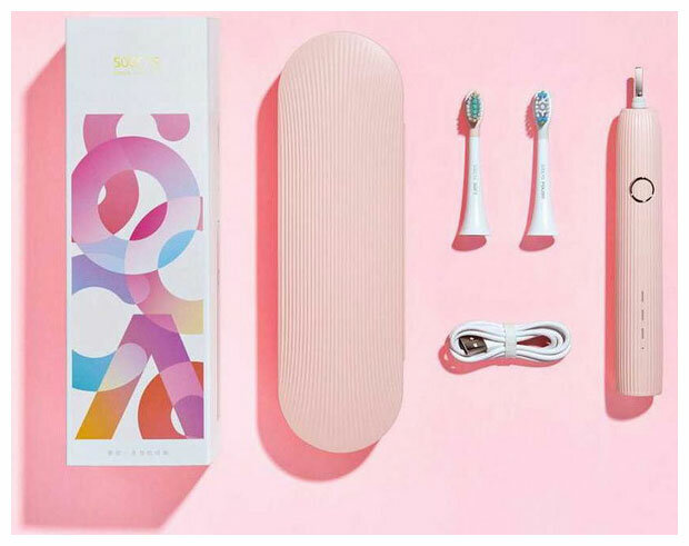 Электрическая зубная щетка Soocas V1, для чувствительных зубов, 2 сменные насадки + футляр в комплекте, 3 режима очистки, звуковая, розовый