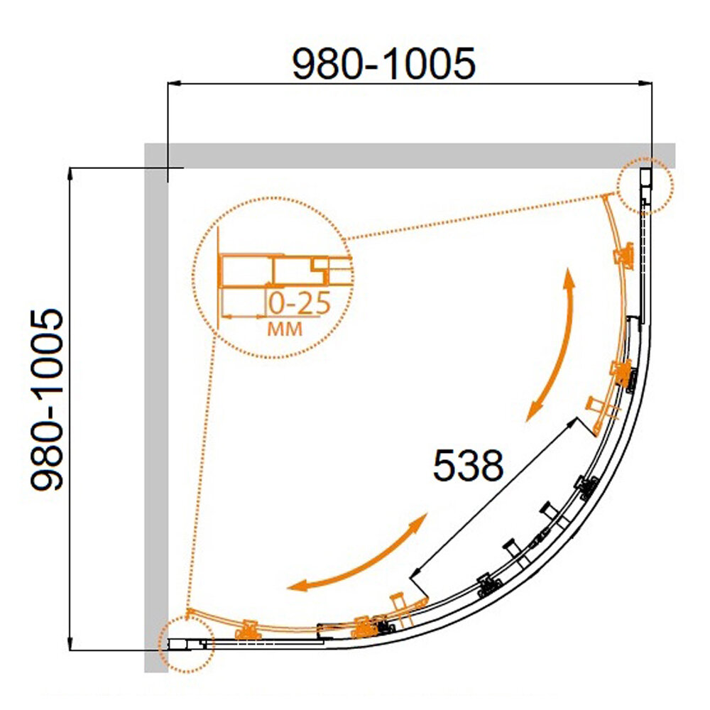 Душевая кабина Душевой уголок CEZARES MOLVENO-R-2-100-P-Cr