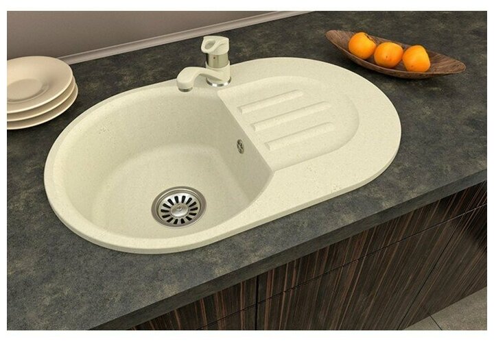 Мойка кухонная каменная GRANFEST SMART овальная GF-SM685L, чаша+крыло 681х433 мм, цвет белый