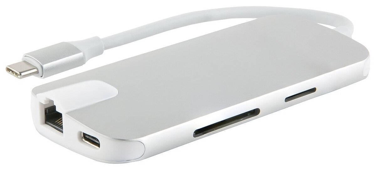 Картридер / USB-хаб USB-концентратор Red Line Multiport adapter Type-C 8 in 1, разъемов: 8, серебристый (УТ000013432)