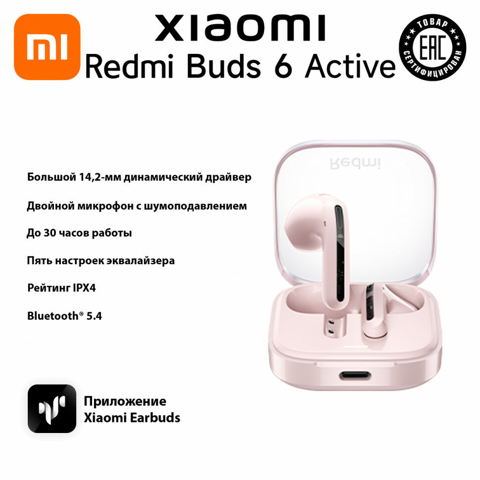 Наушники Xiaomi Redmi Buds 6 Active M2344E1 Transparent powder, международная версия, беспроводные с микрофоном, быстрая зарядка(BHR8395GL) 1 850 ₽ Подробнее