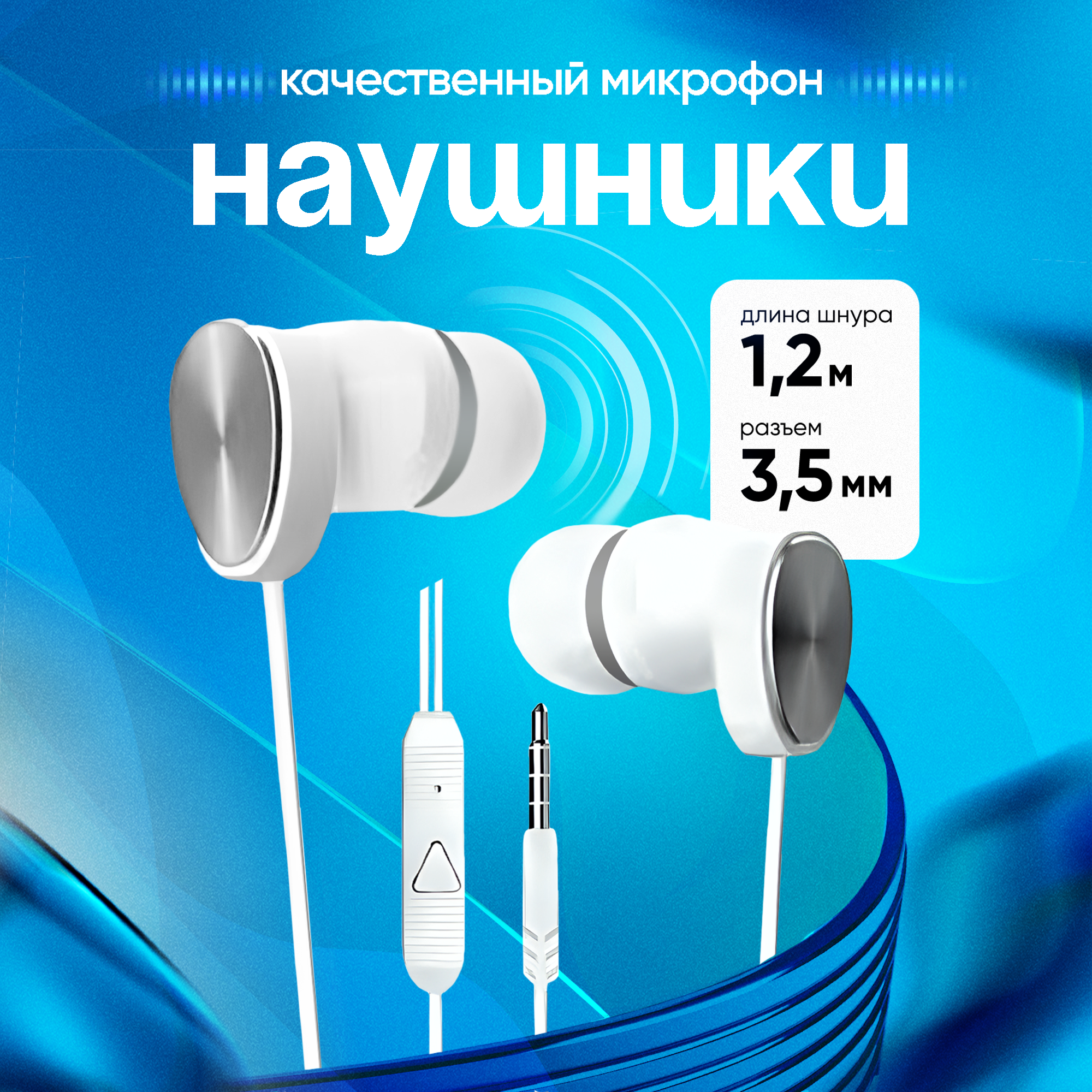 Наушники Наушники вакуумные с микрофоном проводные, 3.5мм, 1,2м, Белые, ERGOLUX промо
