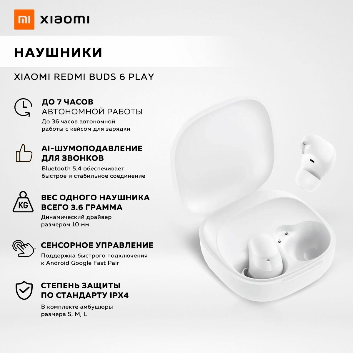 Наушники Беспроводные наушники Xiaomi Redmi Buds 6 Play, белый / модель: M2420E1 / BHR8773GL