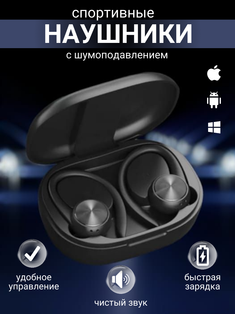 Наушники Беспроводные спортивные bluetooth наушники R200 с индикатором зарядки, защитой от влаги Черные