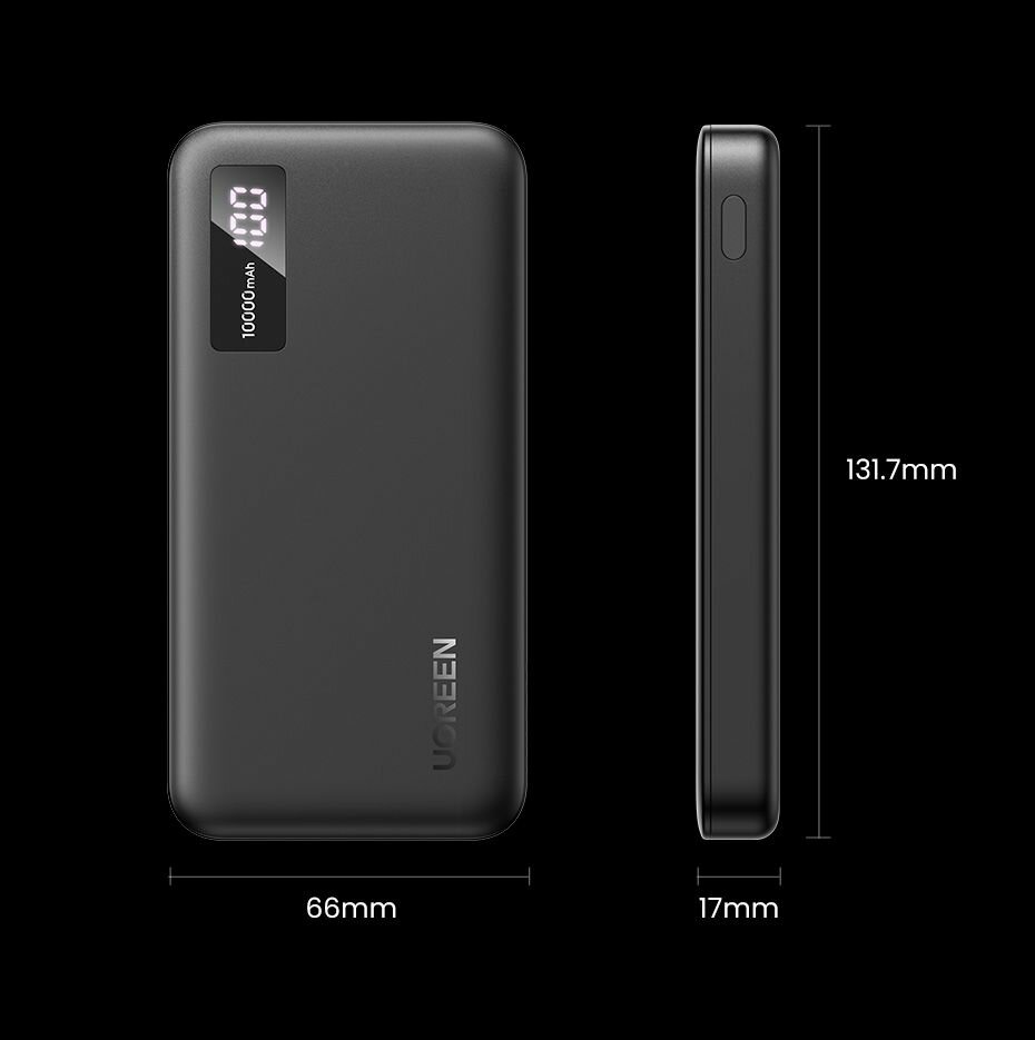 Powerbank Внешний аккумулятор UGREEN PB311 (25742) 10000mAh Mini Quick Charging 20W Power Bank. Цвет: черный