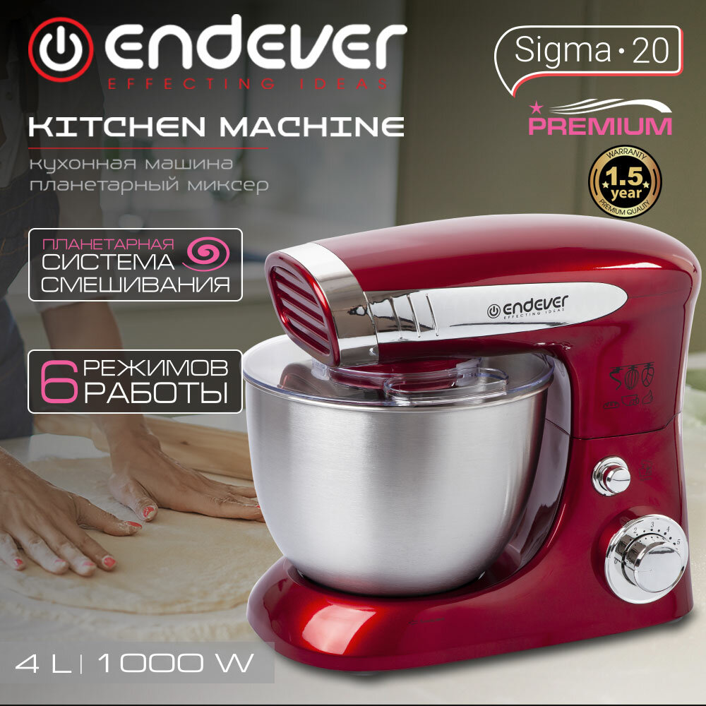 Лучшие цены. Миксер многофункциональный планетарный миксер Endever Sigma-20 - один из самых удобных и используемых приборов для приготовления пищи. Стильный дизайн, обтекаемые формы и качественное исполнение данной модели впишут его в любой интерьер вашей кухни. Планетарный миксер Endever Sigma-20 –это стационарная модель, что позволяет экономить огромное количество времени, поскольку может работать без вашей помощи. Магазины в вашем городе.