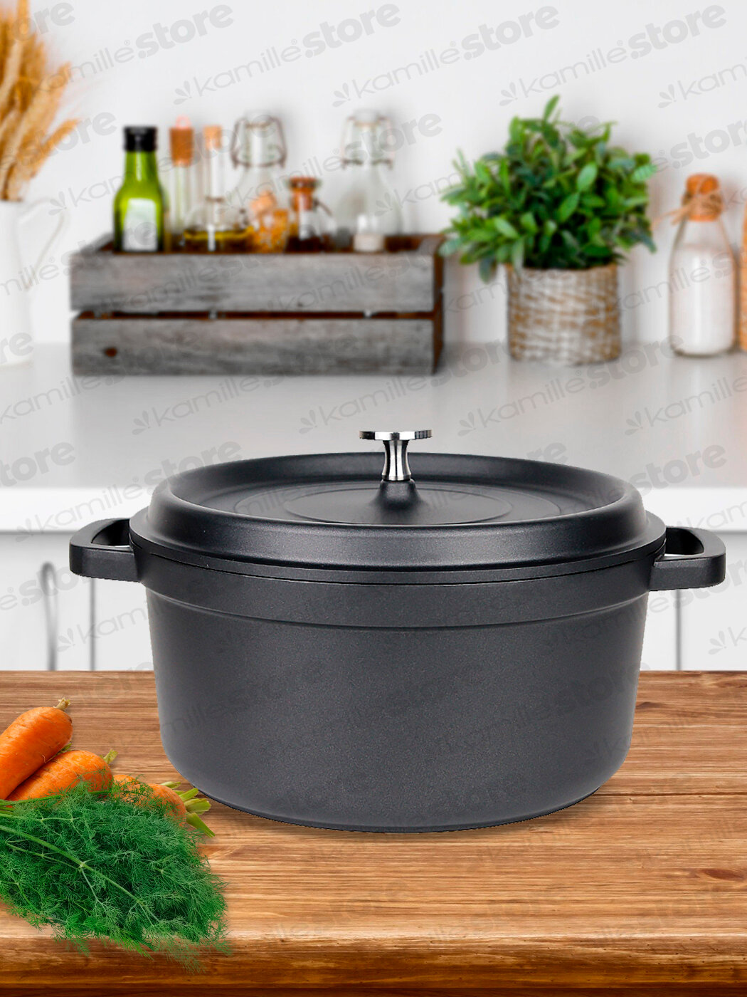 Кастрюли Кастрюля 4,5 л. Kamille KM 4452 серия FRANCE из литого алюминия с антипригарным покрытием (4,5 л. / черный)