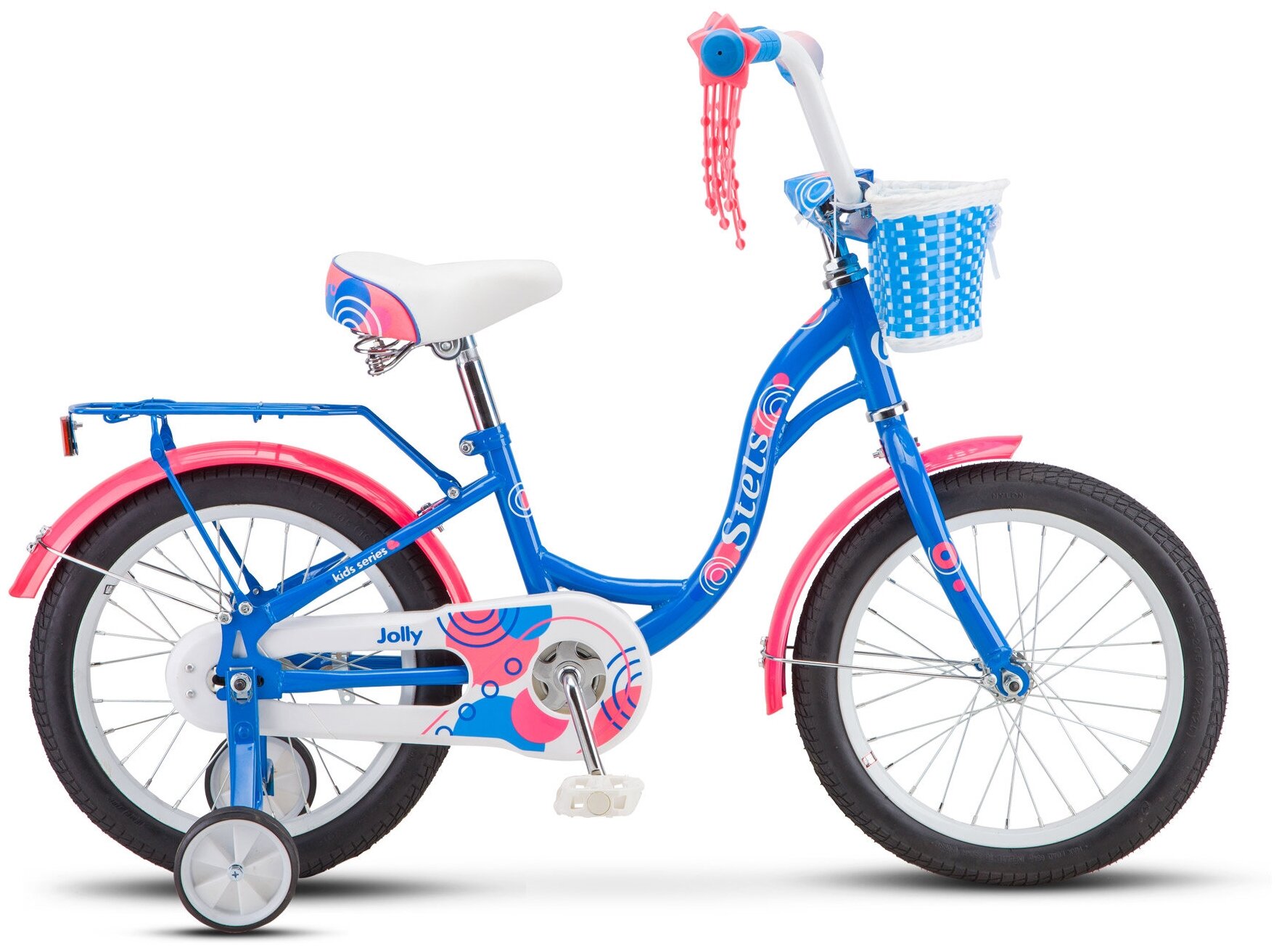 Лучшие цены. Stels — Jolly 16 — яркий детский велосипед с для маленьких леди. Рама велосипеда стальная, имеет удобную низкую форму, которая позволяет легко садиться и спускаться. Широкое седло и руль регулируется по высоте. Велосипед односкоростной с ножным тормозом, оборудован вспомогательными съёмными боковыми колёсиками для удержания равновесия. Полезным дополнением является багажник для вещей или игрушек, а спереди на руле установлена корзинка. Магазины в вашем городе.