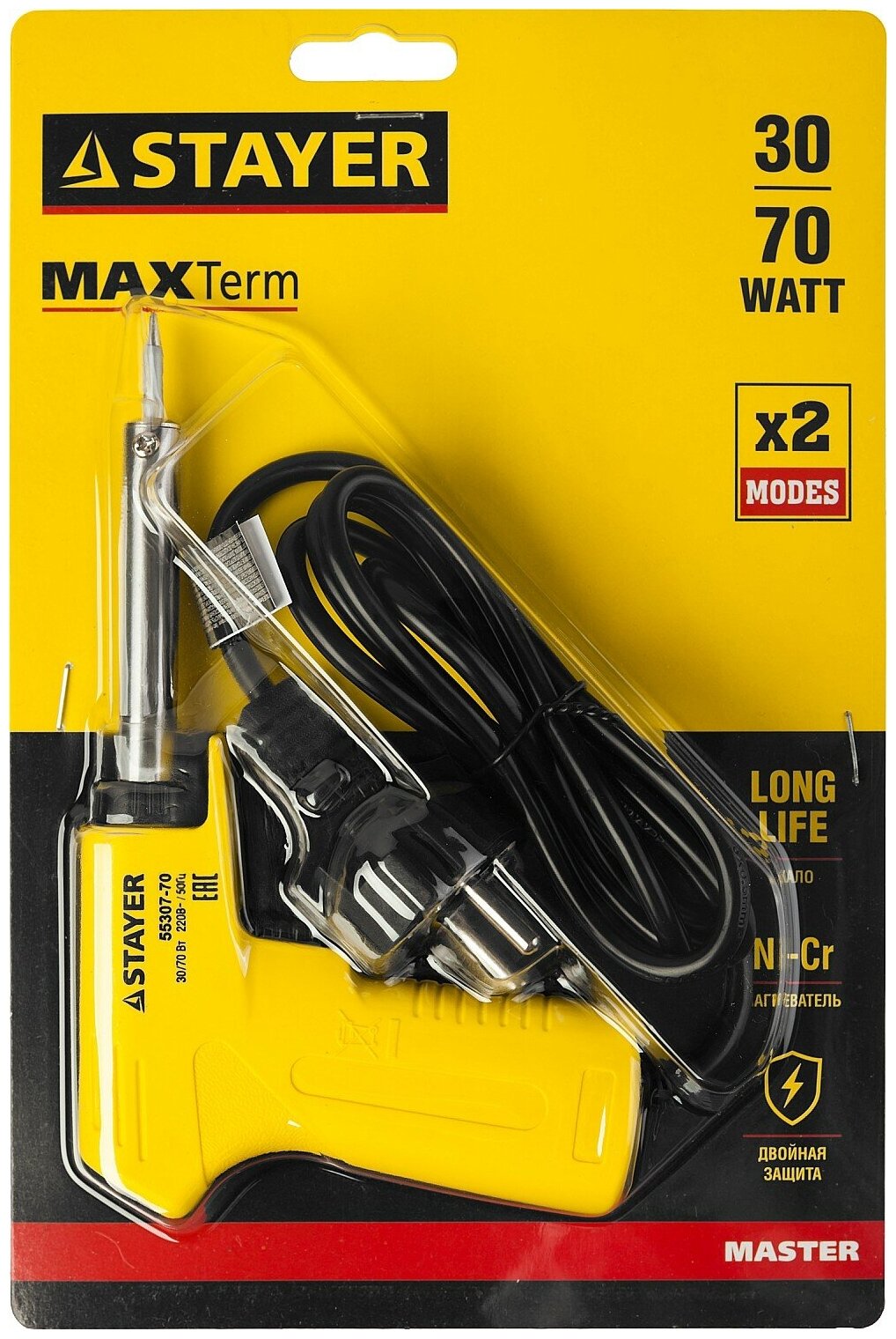 Электропаяльник STAYER 30Вт+70Вт, 2в1, конус, с пистолетной рукояткой, MAXTerm (55307-70)