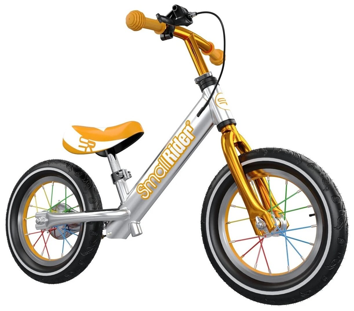 Алюминиевый беговел с ручным тормозом и надувными колесами 12' Small Rider Foot Racer 3 AIR (Серебро-бронзовый), MEGA009