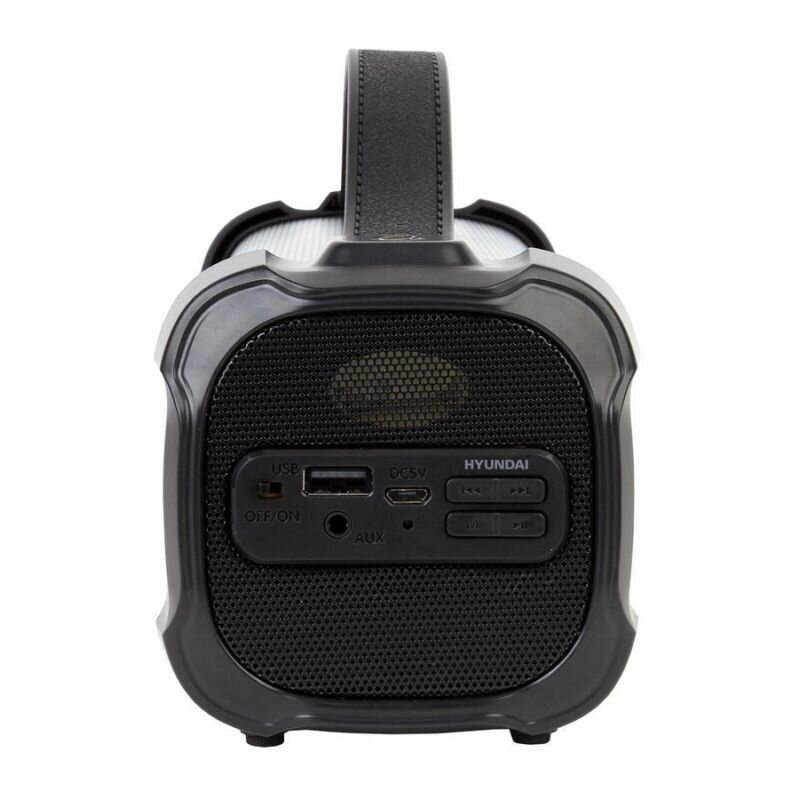 Лучшие цены. Колонка Hyundai H-PAC400 – стильный молодежный аксессуар, яркий и современный, демонстрирующий прекрасное соотношение цены и качества. Выходной мощности в 12 Вт вполне хватает как для ежедневного прослушивания любимых композиций, так и для организации вечеринки. Из технических характеристик можно отметить проводной и беспроводной способы подключения, хорошую емкость аккумулятора, обеспечивающую бесперебойную работу устройства в течение 4 часов, установление коннекта через Bluetooth v 4.2 или порт USB, а. Магазины в вашем городе.