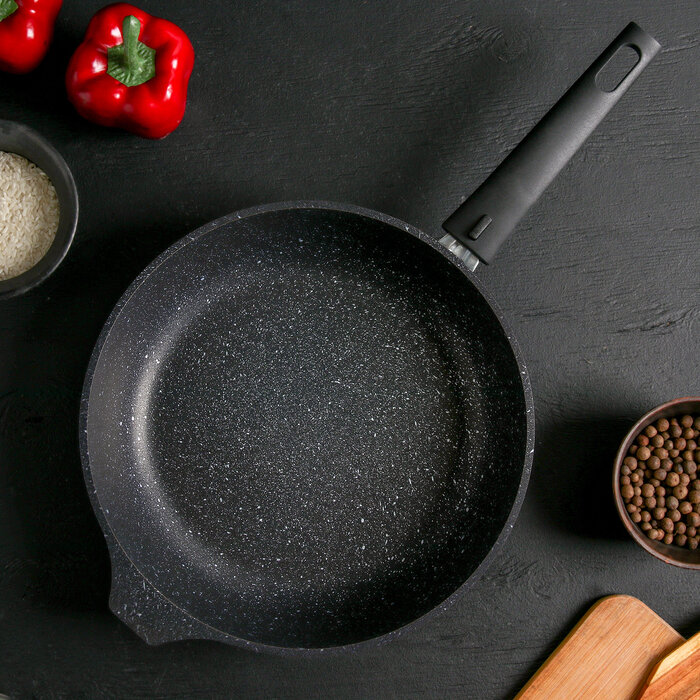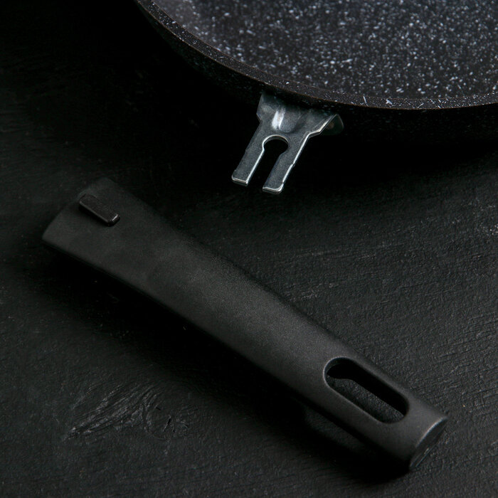 Сковородки Сковорода, d=26 см, съёмная ручка, стеклянная крышка, тёмный мрамор