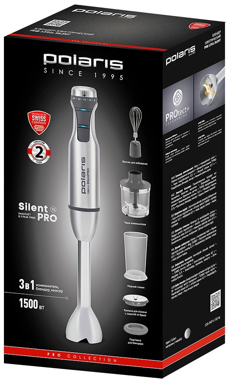 Ручной блендер Polaris PHB 1591L Silent, металлик .