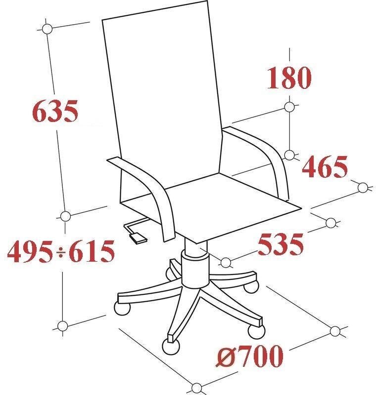 Лучшие цены. Механизм качания с возможностью фиксации кресла в рабочем положении. Регулировка высоты (газлифт). Подлокотники пластиковые с накладкой из искусственной кожи. Пластиковая крестовина. Материал обивки: Искусственная кожа. Нагрузка до 180 кг Высота до сиденья min. 49.5 см. Высота до сиденья max. 61.5 см. Высота подлокотников от сиденья 67,5-79,5 см. Высота спинки от сиденья 113-125 см. Высота спинки сидения min 113 см. Высота спинки сидения max 125 см. Ширина сиденья 53.5 см. Глубина сиденья 46.5 см. Магазины в вашем городе.