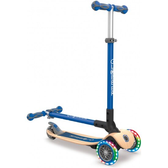 Трехколесный самокат "GLOBBER" PRIMO FOLDABLE WOOD LIGHTS синий