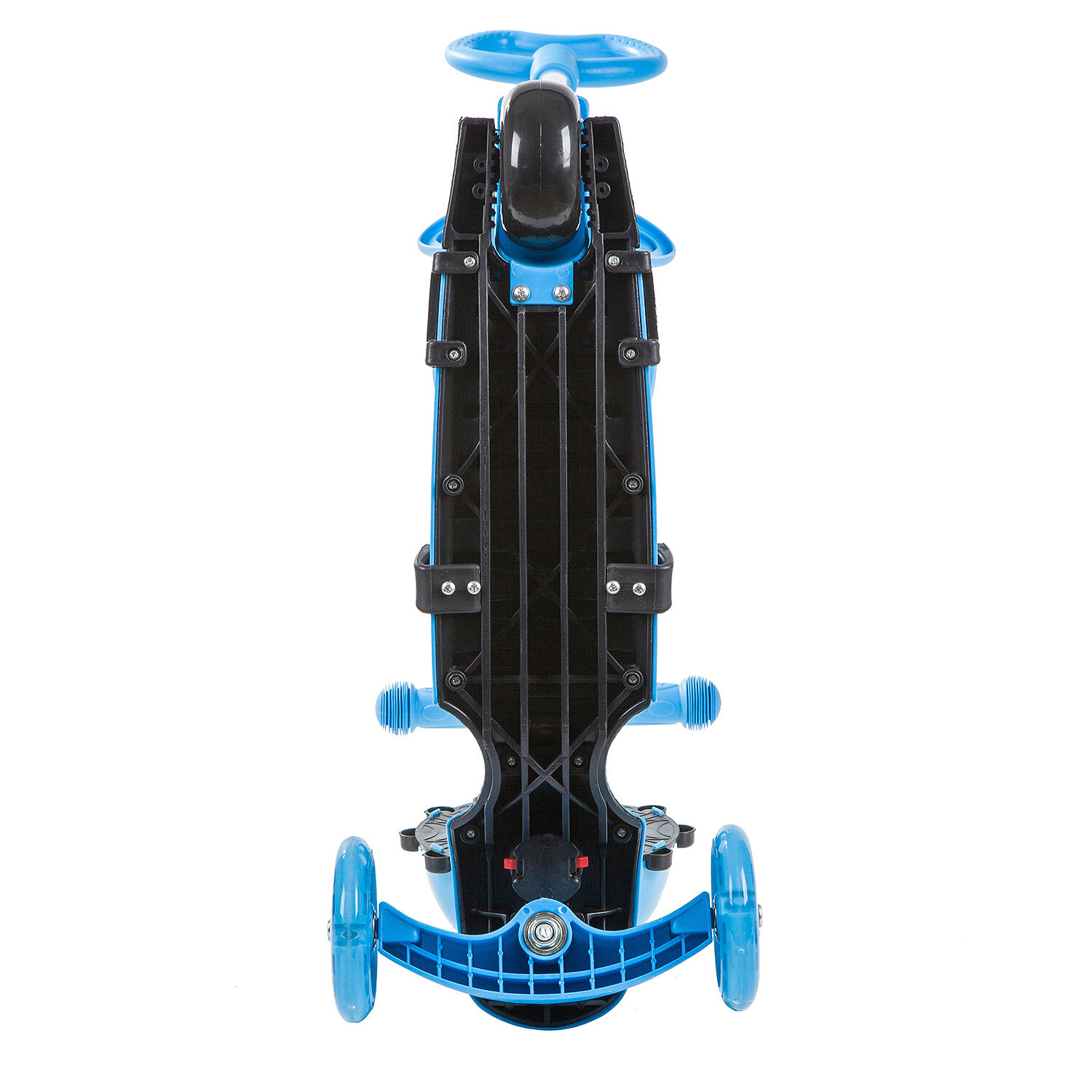 Самокат Novatrack Disco-kids Saddle PRO для детей, трансформер, свет.колеса PU 120*90мм голубой