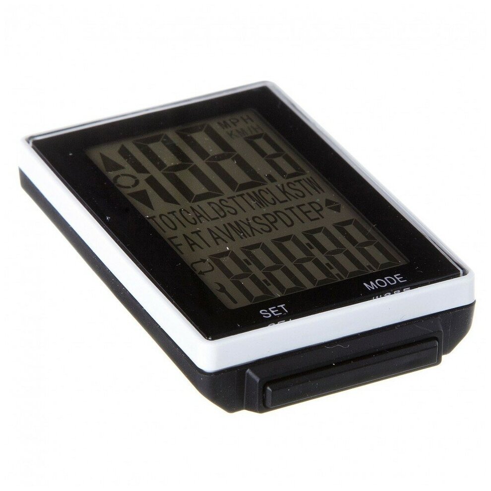 Лучшие цены. Велокомпьютер беспроводной с 15 функциями: 1. Текущая скорость 2. Часы 3. Скан функций 4. Секундамер 5. Дистанция поездки 6. Общая дистанция 7. Время поездки 8. Средняя скорость 9. Максимальная скорость 10. Расход калорий 11. Температура 12. Изменение средней скорости 13. Напоминание об обслуживании 14. Подсветка 15. Автовыключение Две батареи в комплекте. Магазины в вашем городе.