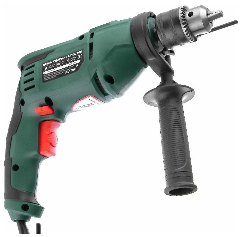 Лучшие цены. Ударная дрель с двигателем мощностью 710 Вт идеально подойдет для сверления дерева, металла и кафеля в безударном режиме, а также кирпича и легкого бетона в ударном режиме. Благодаря ключевому патрону обеспечивается максимально надежная фиксация оснастки. Для точной настройки инструмента в зависимости от материала предусмотрена электронная регулировка оборотов. Извлечь сверло иил вывернуть крепеж поможет встроенный реверс. Магазины в вашем городе.