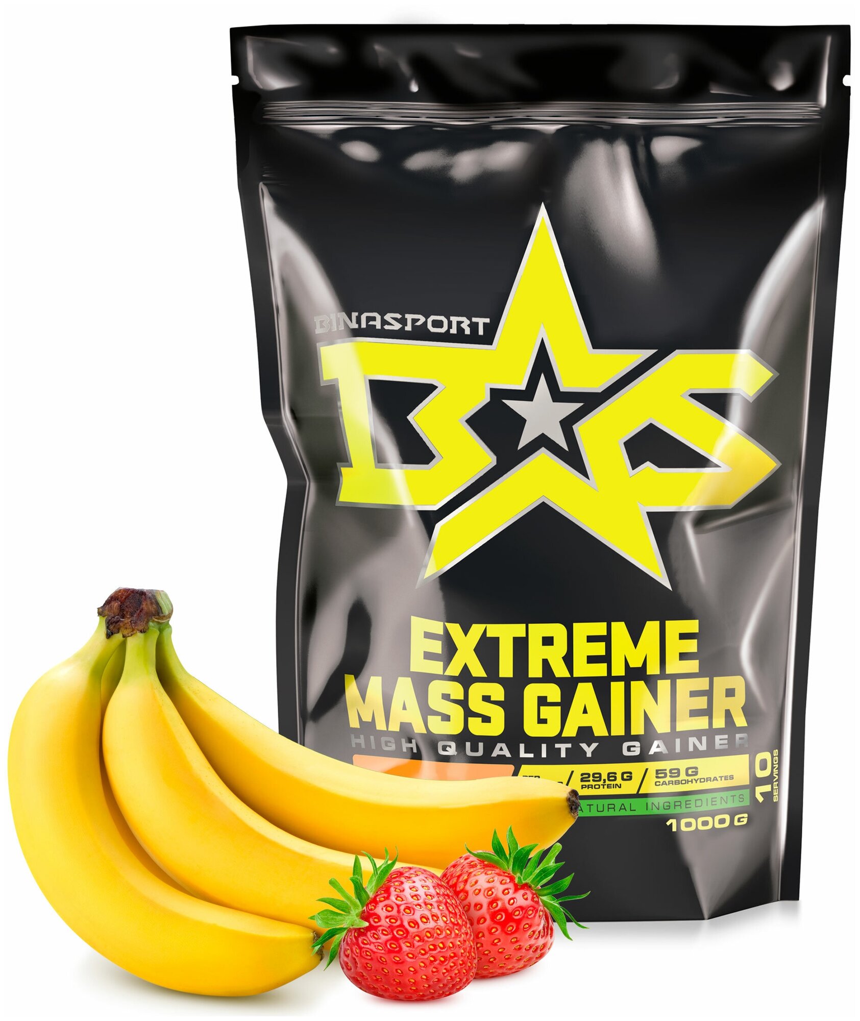 Гейнер Гейнер Binasport Экстрим Масс "EXTREME MASS GAINER" 1000 г со вкусом клубники-банана