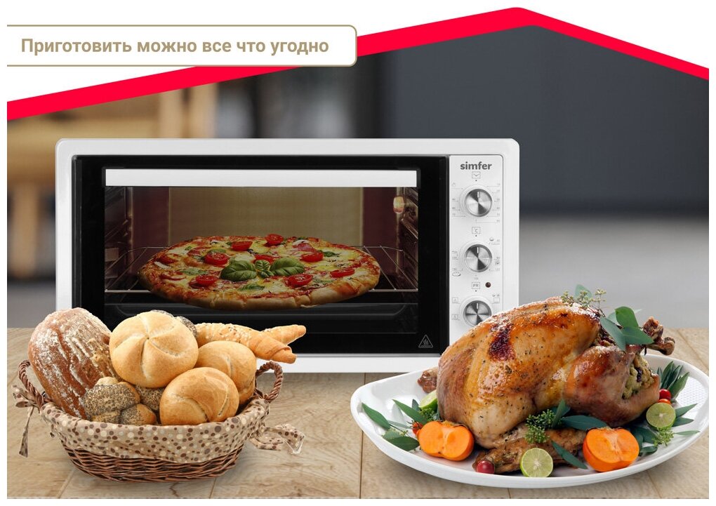 Мини-печь Simfer / 5 режимов / конвекция / 45 литров / 2 противня + хромированная решетка / подсветка / эмалированная внутренняя поверхность / 5 лет гарантии / белый 15 926 ₽ Подробнее