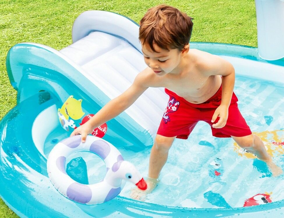 Лучшие цены. Яркий, красочный и многофункциональный детский центр для игр с водой оснащен всеми необходимыми элементами. В комплекте надувное ведерко, надувной круг в виде утки и фонтан-аллигатор. Насос приобретается отдельно. Магазины в вашем городе.