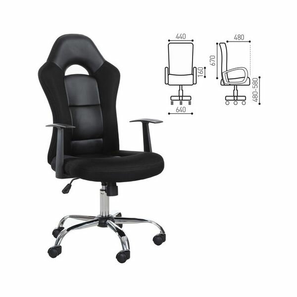 Кресло компьютерное Brabix экокожа, ткань, хром, черное (531581)