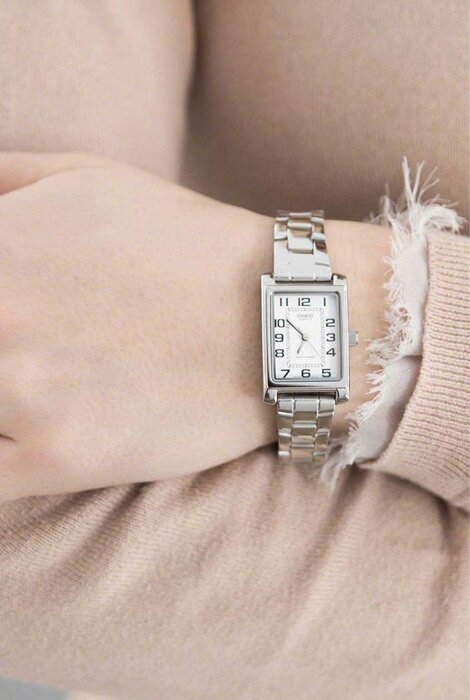 Лучшие цены. Женские наручные часы Casio LTP-1234PD-7B кварцевые, функционируют от элемента питания в виде батарейки. Корпус латунный с белым циферблатом и минеральным стеклом, защищающим циферблат от ударов и повреждений, браслет стальной. Модель Casio LTP-1234PD-7B обладает степенью влагостойкости 30 м (3 АТМ), где допустимы попадания брызг от мытья рук или дождя, для плавания рассмотрите варианты от 100 м (10 АТМ). Магазины в вашем городе.