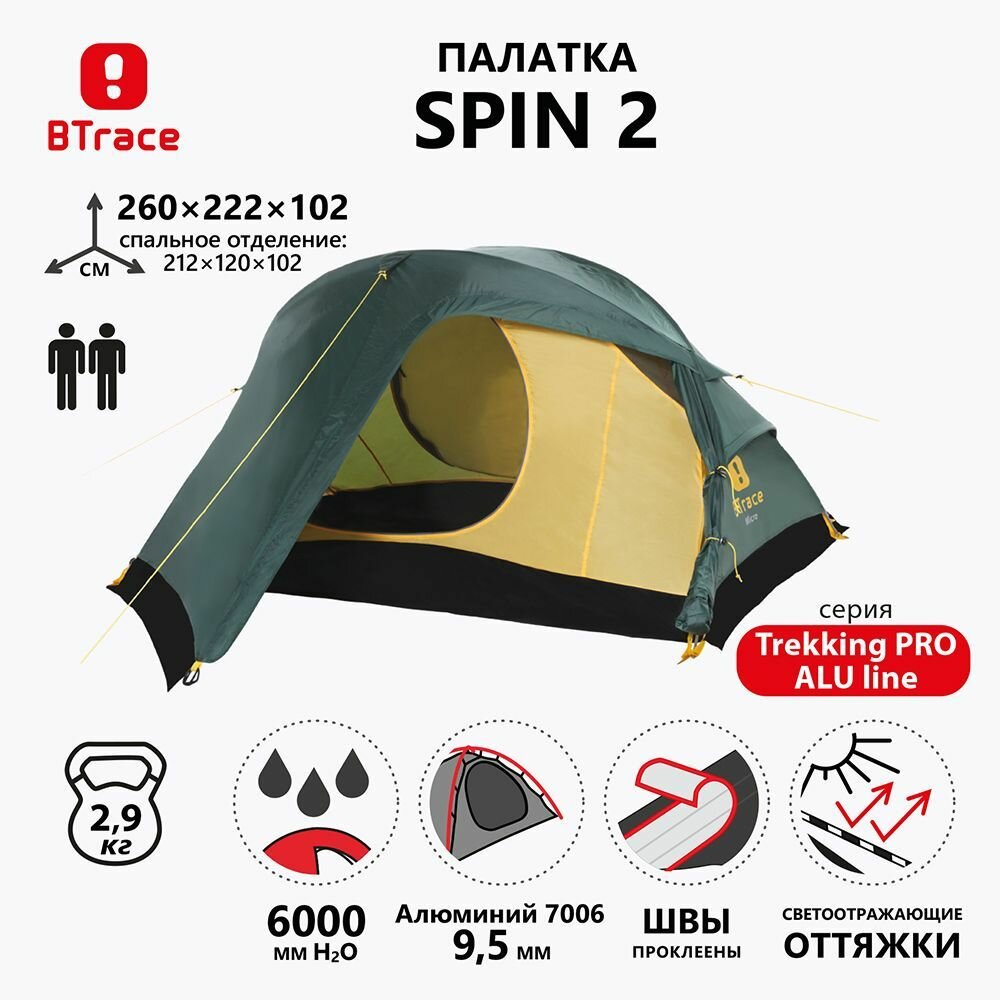 Палатка BTrace Spin 2 ALU (Зеленый/желтый)