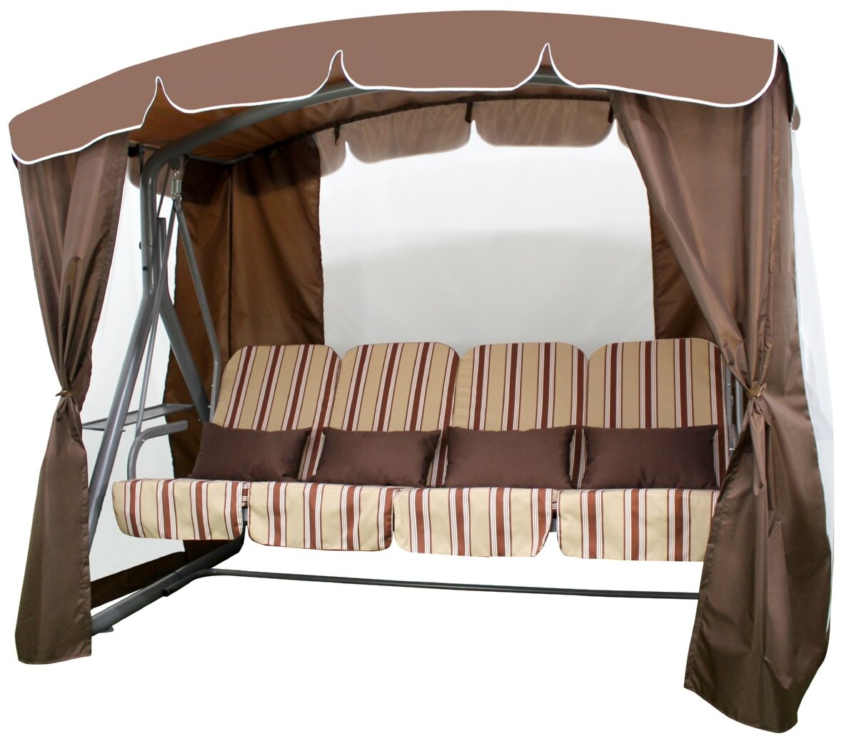 Качели садовые Арно 4-местные с москитной сеткой Дефа Люси Люкс Шоколад