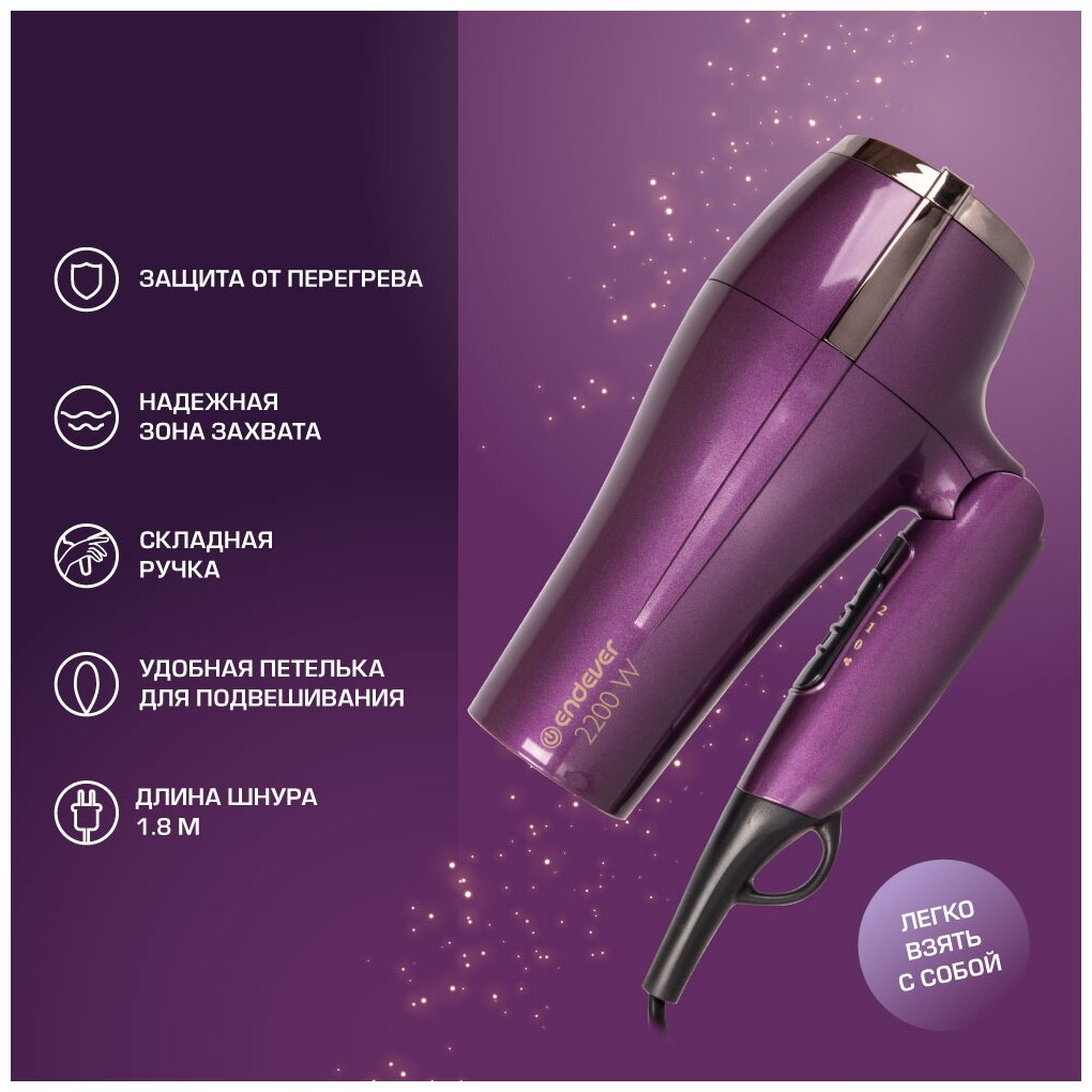 Фен Endever Aurora 473, 2200Вт, фиолетовый 1 190 ₽ Подробнее