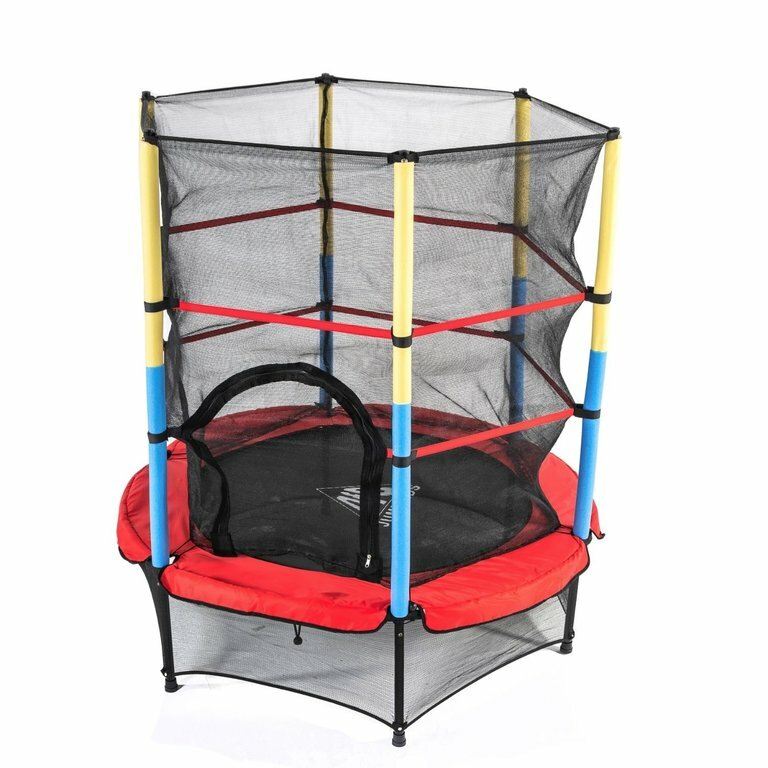 Каркасный батут DFC Jump Kids 55" (пружины амортизирующий трос) 137х137х165 см , красный/синий/желтый