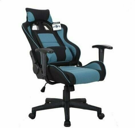 Кресло компьютерное BRABIX "GT Racer GM-100", две подушки, ткань, черное/голубое
