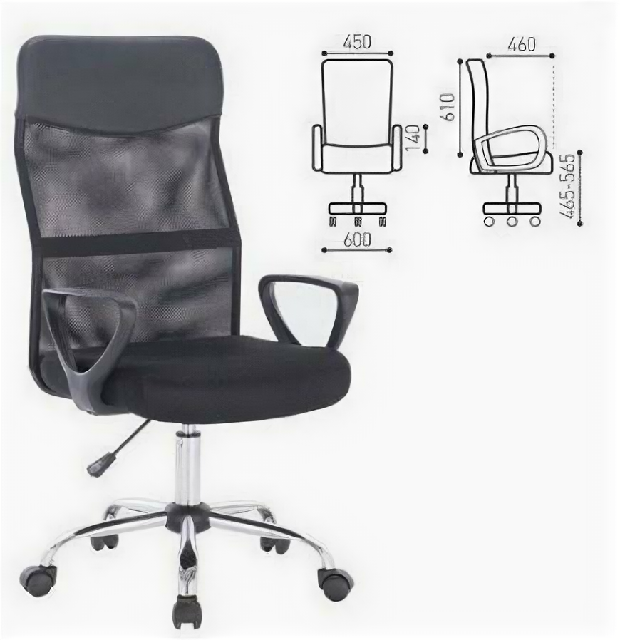 Кресло Brabix с подлокотниками, хром, черное (531845)