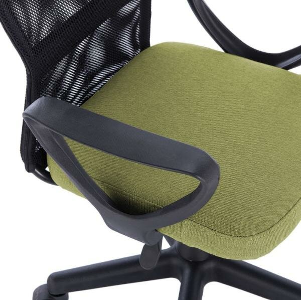 Лучшие цены. Тип: Кресло; Материал обивки: ткань, сетка; Цвет обивки: чёрный, зеленый; Подлокотники: пластик; Механизм качания: нет; Регулировка по высоте: газлифт; Вращение по горизонтали: да; Основание: крестовина с колёсиками; Ограничение по весу: до 100 кг; Дополнительно: Современное, яркое кресло с обивкой из прочной и практичной мебельной ткани. Рама спинки выполнена из двойной трубы, что обеспечит долговечность эксплуатации. Стильные и компактные подлокотники создают дополнительное удобство. Магазины в вашем городе.