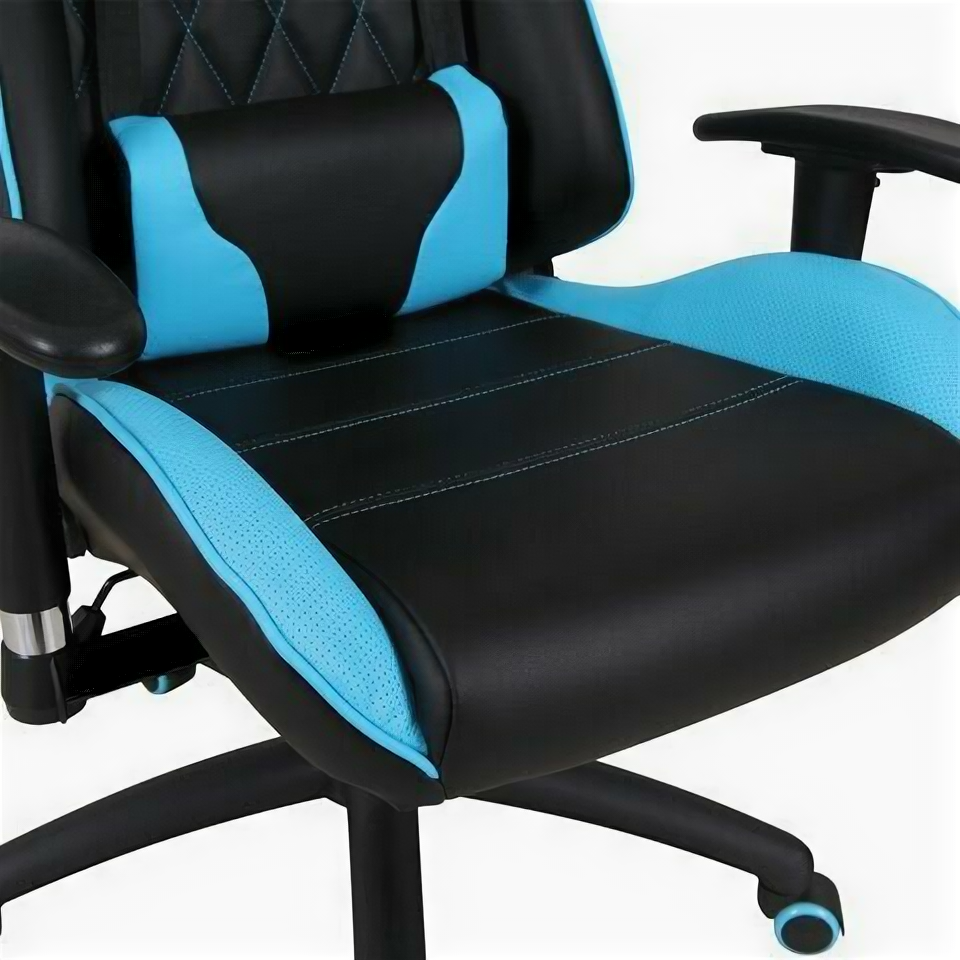 Кресло компьютерное BRABIX "GT Master GM-110", две подушки, экокожа, черное/голубое, 531928 В комплекте: 1шт.