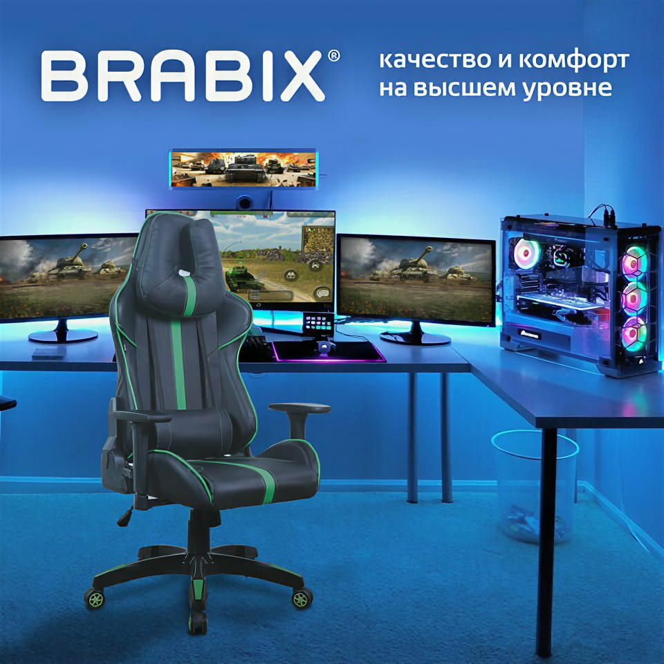Кресло компьютерное BRABIX GT Carbon GM-120 две подушки экокожа черное/зеленое 14 270 ₽ Подробнее