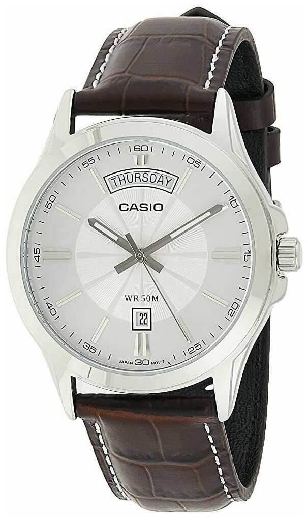 Лучшие цены. Мужские кварцевые часы в круглом стальном корпусе на кожаном ремешке. Японская компания Casio известна созданием портативной электронной и вычислительной техники. В производстве часов Casio славится надежным качеством часовых механизмов, производимых, в основном, в Японии, разнообразием встроенных функций, а также широким ассортиментом с четко обозначенными модельными рядами, помогающими покупателю выбрать нужные часы. Магазины в вашем городе.