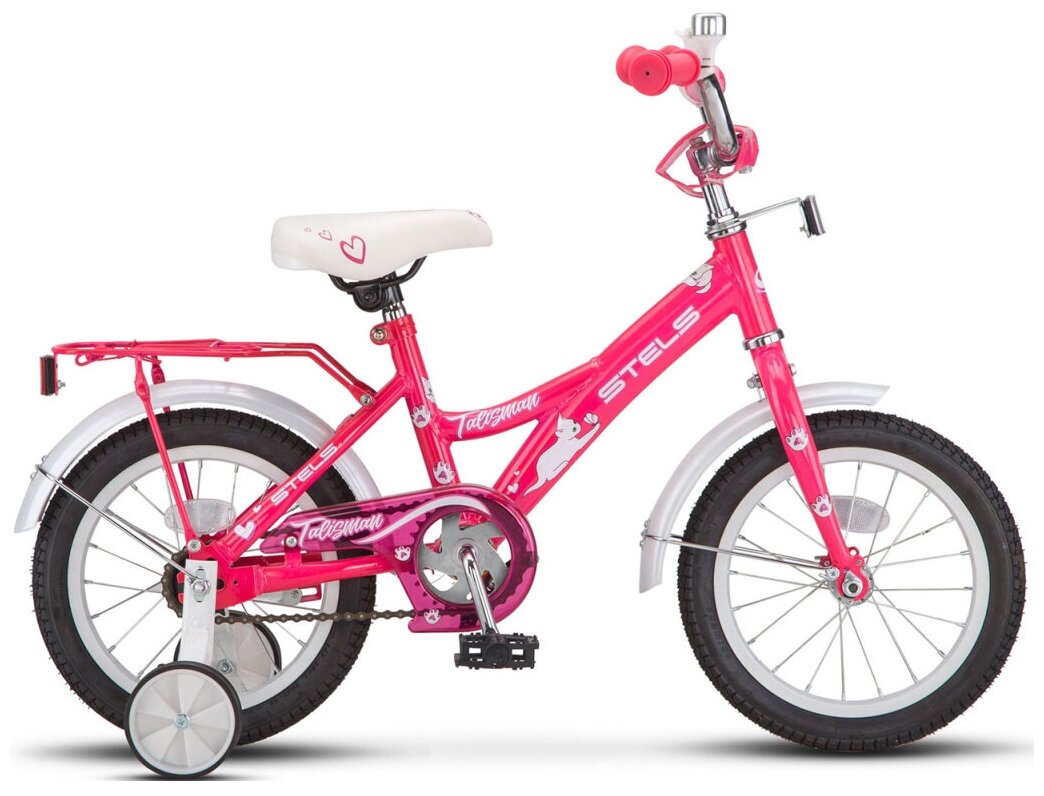 Лучшие цены. Stels Talisman Lady 16 — яркий современный велосипед, раскрашен специально для девочек. Рама велосипеда стальная, имеет удобную низкую форму, которая позволяет легко садиться и спускаться. Седло и руль регулируется по высоте. Велосипед односкоростной с ножным тормозом, оборудован вспомогательными съёмными боковыми колёсиками для удержания равновесия. Полезным дополнением является багажник для вещей или игрушек. Велосипед оснащён полноразмерными металлическими крыльями и кожухом защиты цепи. Магазины в вашем городе.