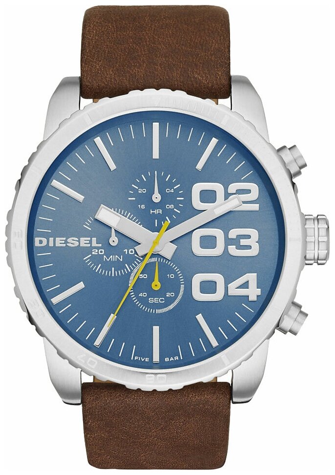 Лучшие цены. Мужские наручные часы Diesel DZ4330 , элемент питания в виде батарейки приводит их в действие. Корпус стальной с голубым циферблатом и минеральным стеклом, устойчивым к ударам, браслет - кожаный ремешок. Модель Diesel DZ4330 обладает степенью влагостойкости 50 м (5 АТМ), в этом случае разрешено кратковременное погружение в воду, для плавания рассмотрите модели от 100 м (10 АТМ). Магазины в вашем городе.