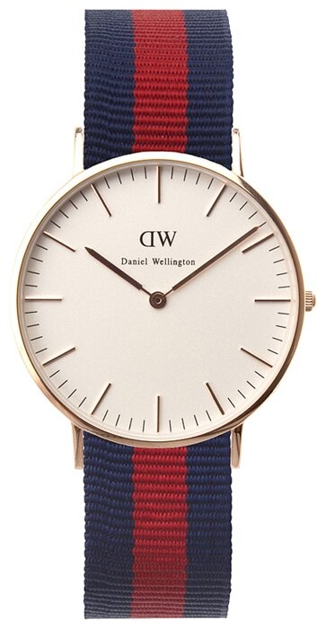 Лучшие цены. Кварцевые часы. Центральные часовая и минутная стрелки. Белый циферблат. Круглый корпус выполнен из полированной нержавеющей стали 316L с IP покрытием цвета розового золота. Диаметр корпуса составляет 36 мм, толщина 6 мм. Текстильный ремешок НАТО сине-красного цвета, ширина 18 мм, длина 150-200 мм, стандартная застежка. Прочное минеральное стекло устойчивое к мелким механическим повреждениям. Водостойкость WR 30 (брызги). Магазины в вашем городе.