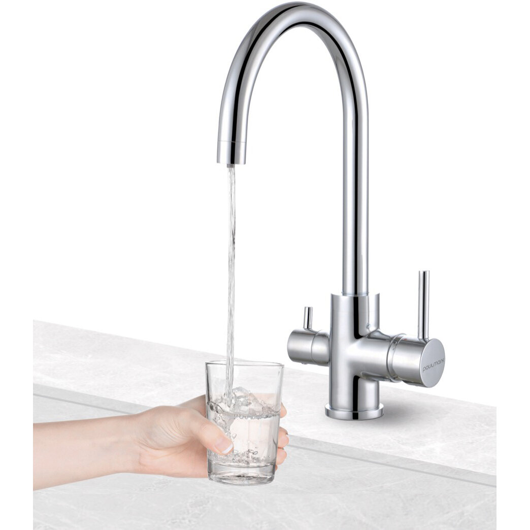 Кухонный смеситель Paulmark ESSEN, подключение к фильтру питьевой воды с отдельным каналом и выпуском, высокий поворотный излив, латунь, на мойку / столешницу, бежевый, Es213211-328 16 500 ₽ Подробнее