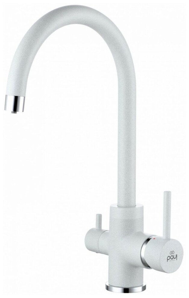 Кухонный смеситель Paulmark ESSEN, подключение к фильтру питьевой воды с отдельным каналом и выпуском, высокий поворотный излив, латунь, на мойку / столешницу, белый с вкраплениями, Es213211-331 16 500 ₽ Подробнее