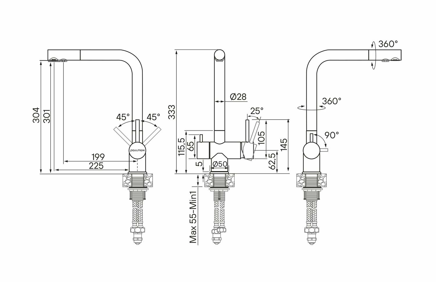 Смеситель для кухни Paulmark SKALEN из нержавеющей стали AISI 304, подключение к фильтру питьевой воды с отдельным каналом и выпуском, Г-образный, поворотный, на мойку, антрацит, Sk213020-401 26 900 ₽ Подробнее